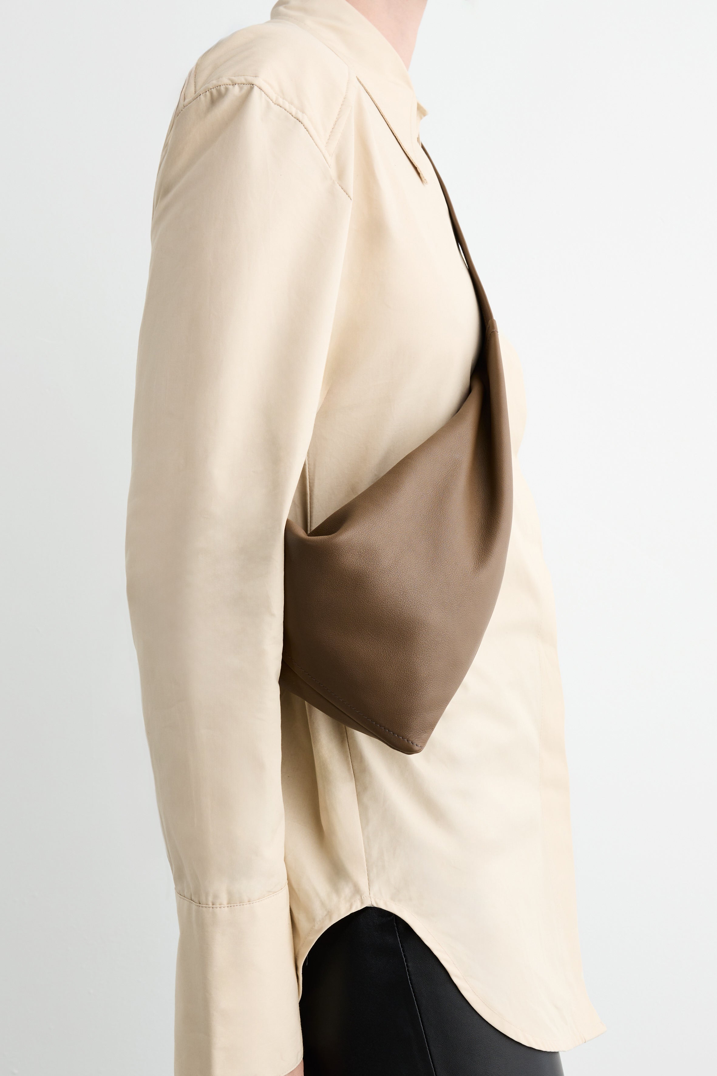 Vancouver is crafted from a single panel of leather that twists around itself. Inspired by the simple act of knotting, this construction creates its sculptural V-shape and relaxed, folded movement. Softly structured, designed to sit naturally across the body.