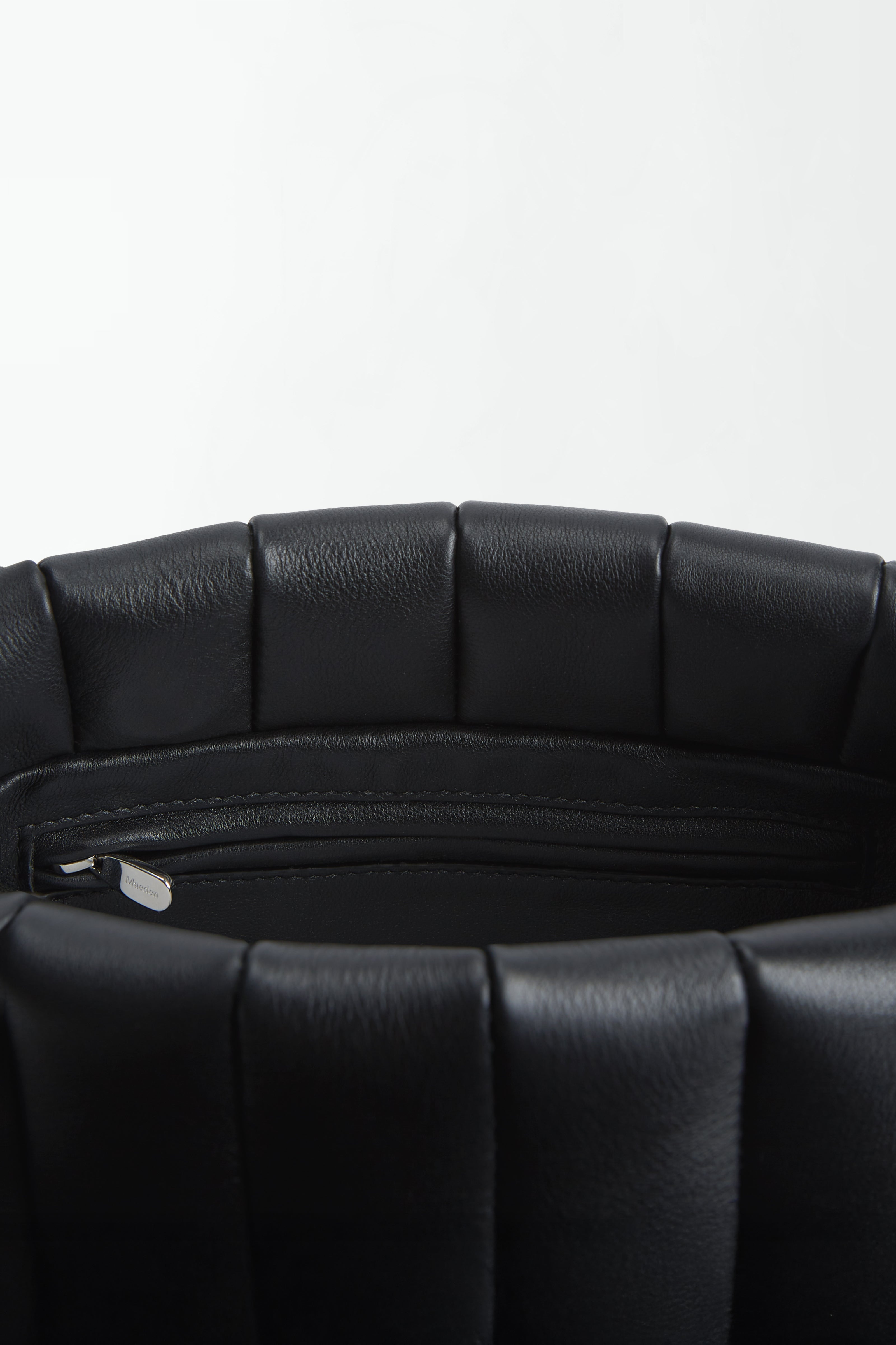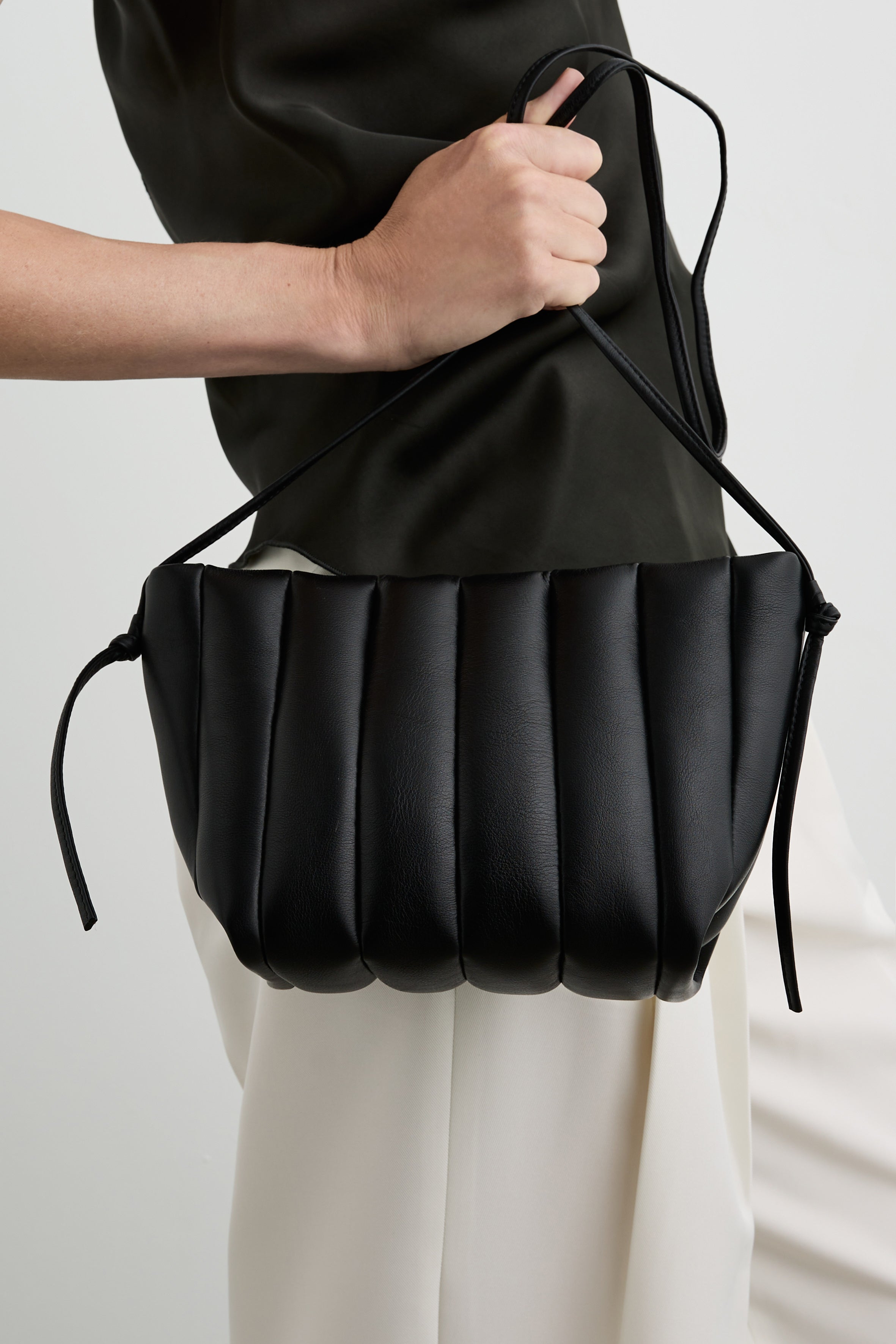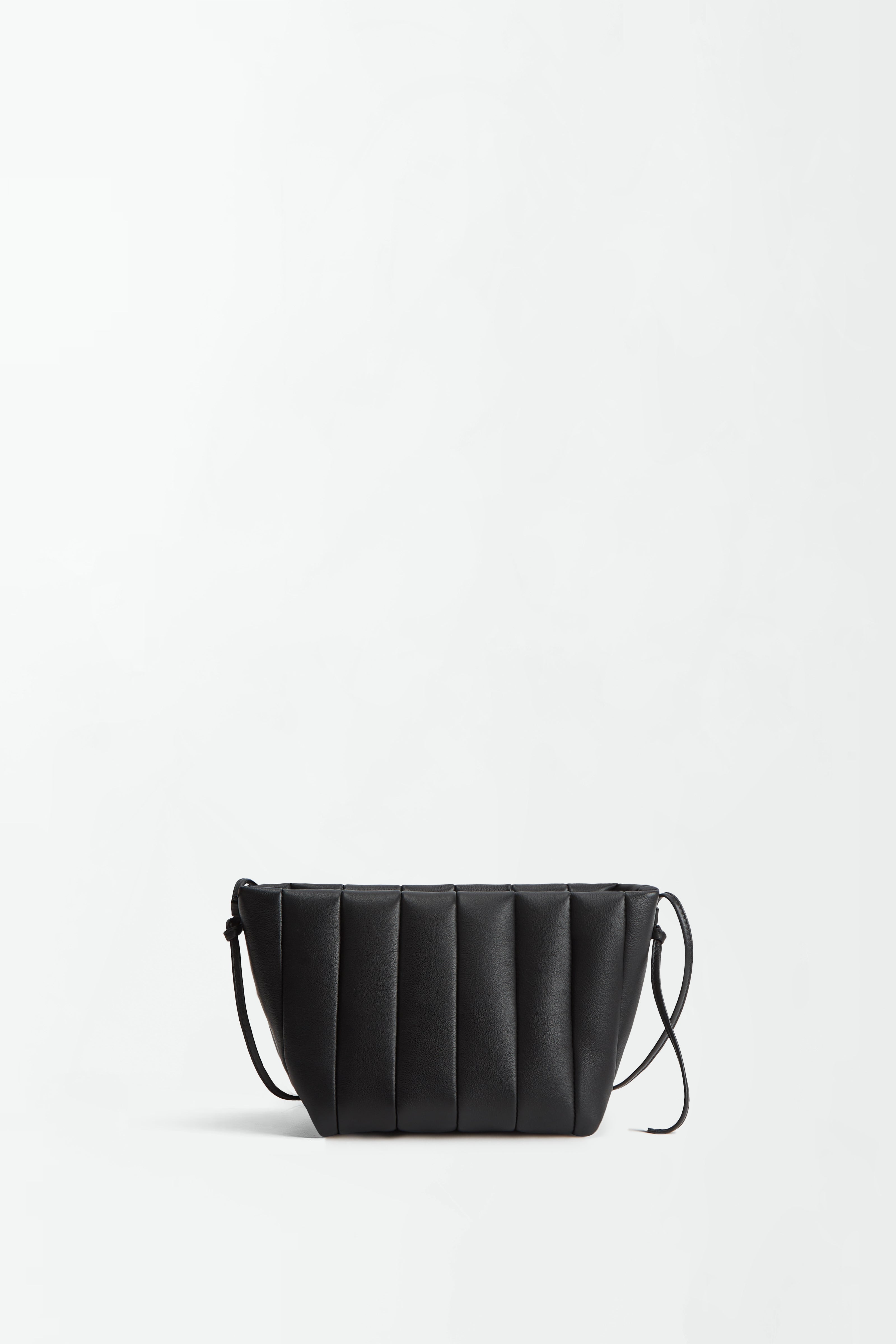 The Boulevard is a more versatile form of our pouch. Its rhythmic padded leather grooves are supported by a slender adjustable strap that allows you to wear it at the desired length.