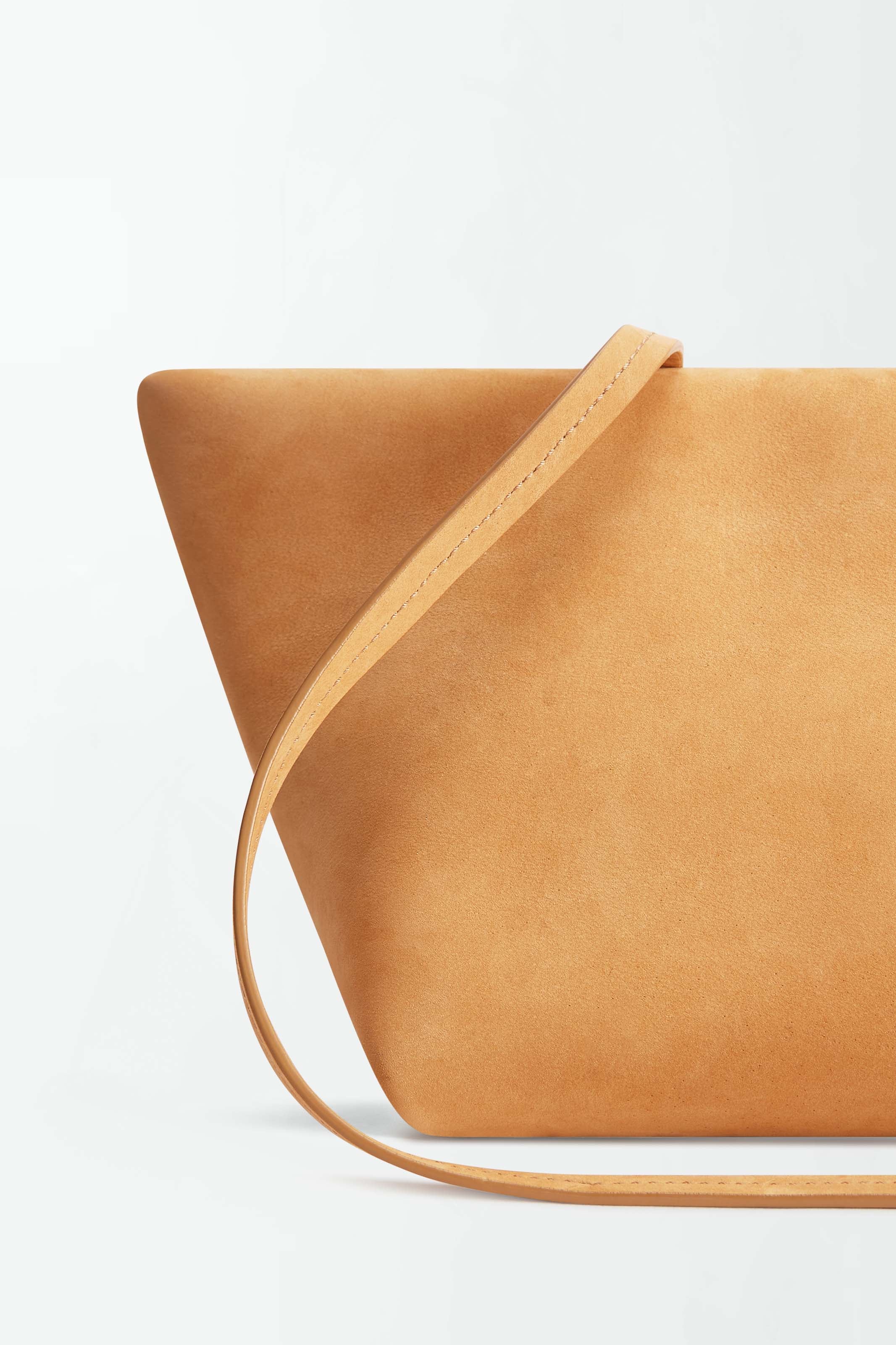 The soft and absorbent nature of this leather requires gentle care. To clean, wipe lightly with a soft, damp cloth and dry immediately. Natural variations in tone, marks, and grains are inherent features of our leather handbags.