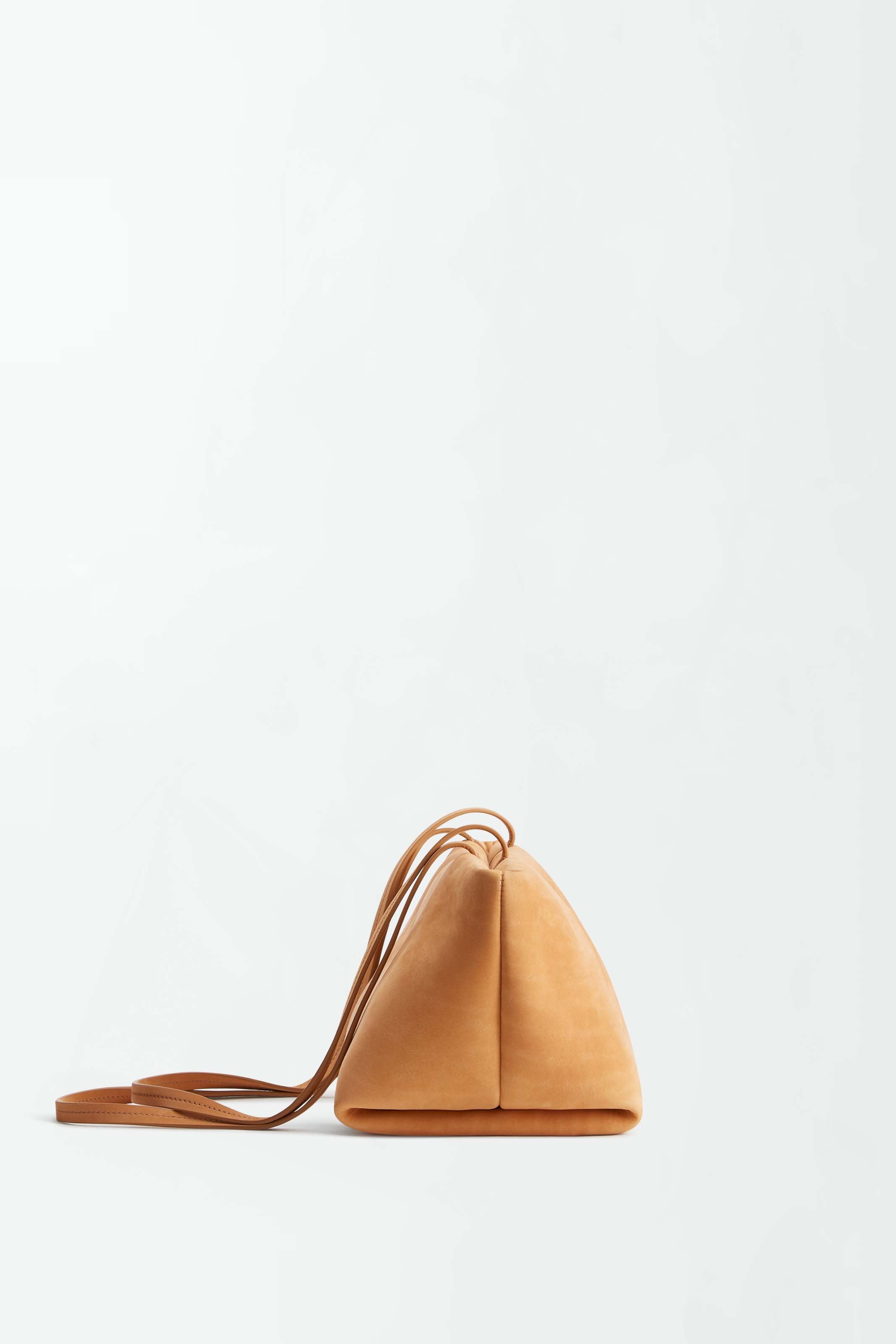Crafted from ultra-soft nappa leather, it features two fixed shoulder straps and a sleek silhouette with just enough space for your daily essentials. Its padded construction is achieved by layering razor-thin, specially developed leather with a mix of jelly and foam; giving the bag its signature jellyfish-like volume. Smooth, wrinkle-free, and softly structured, it’s strong in shape yet light to the touch.