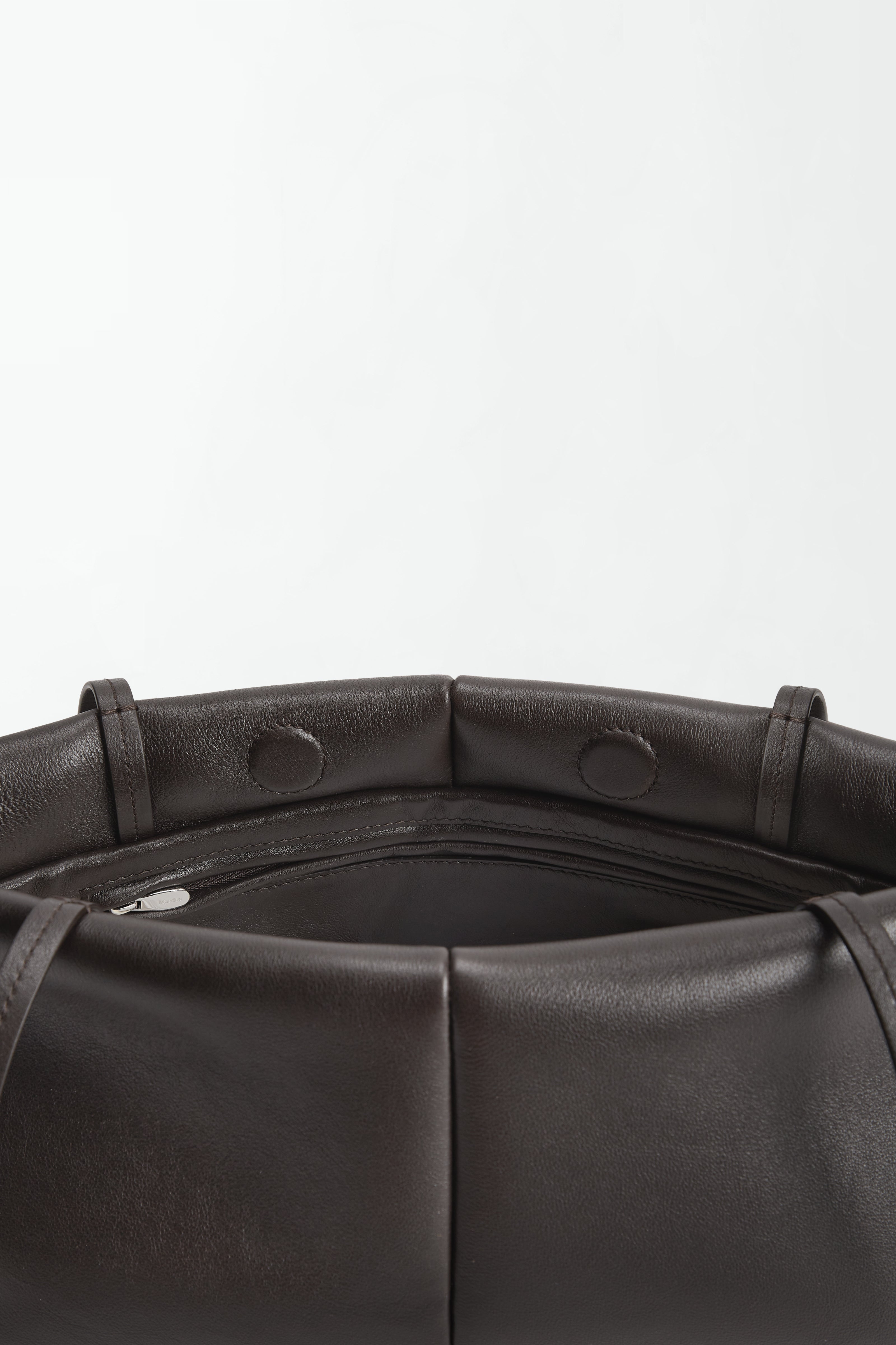 Crafted from ultra-soft nappa leather, it features two fixed shoulder straps and a sleek silhouette with just enough space for your daily essentials. Its padded construction is achieved by layering razor-thin, specially developed leather with a mix of jelly and foam; giving the bag its signature jellyfish-like volume. Smooth, wrinkle-free, and softly structured, it’s strong in shape yet light to the touch.