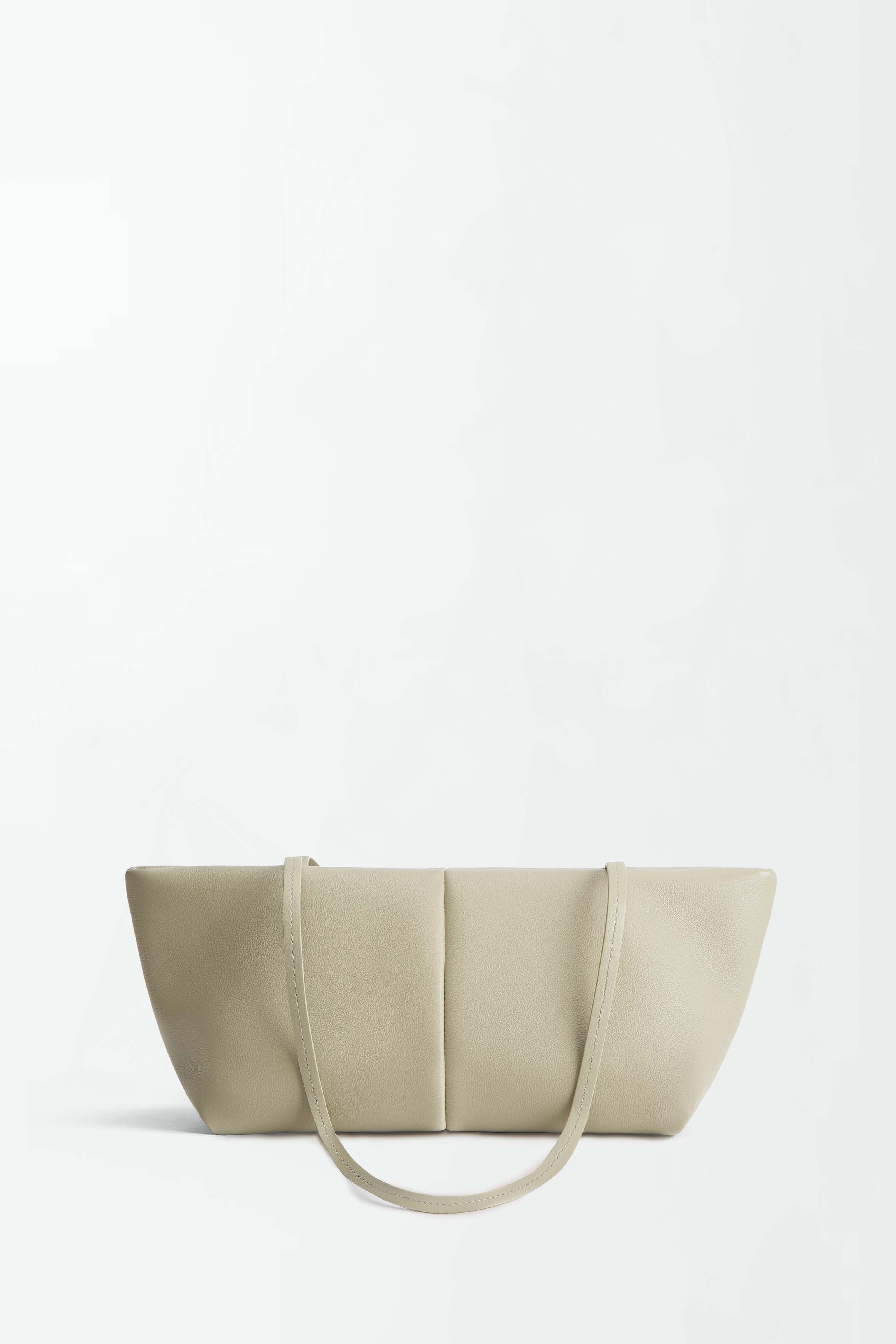 Crafted from ultra-soft nappa leather, it features two fixed shoulder straps and a sleek silhouette with just enough space for your daily essentials. Its padded construction is achieved by layering razor-thin, specially developed leather with a mix of jelly and foam; giving the bag its signature jellyfish-like volume. Smooth, wrinkle-free, and softly structured, it’s strong in shape yet light to the touch.