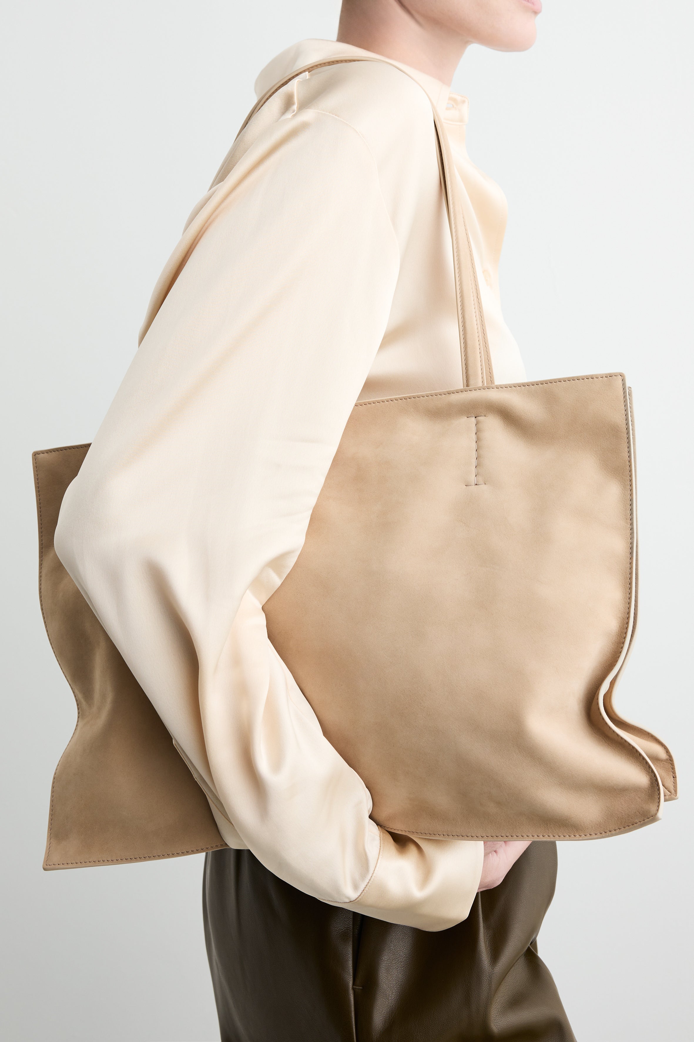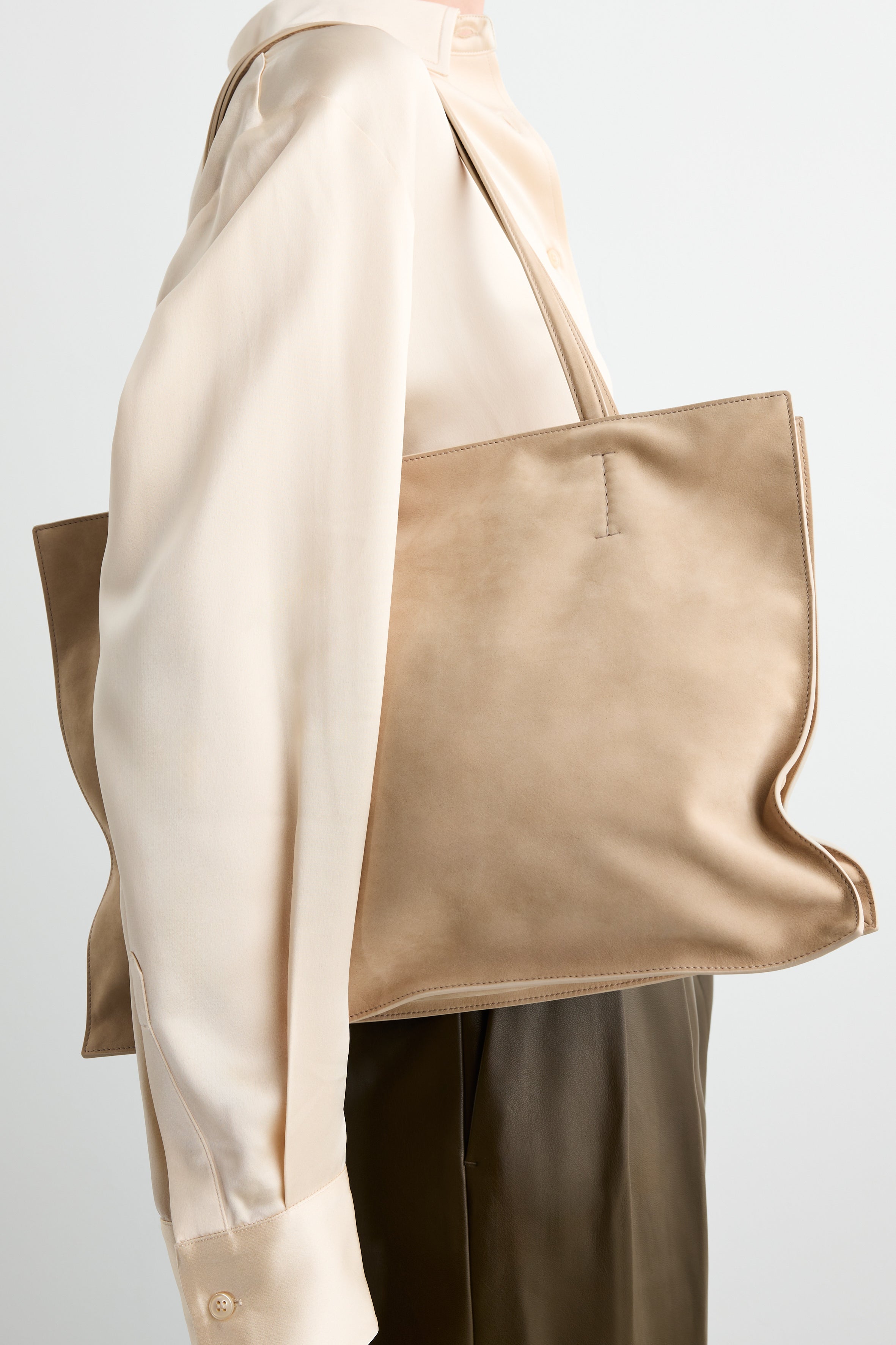 The soft and absorbent nature of this leather requires gentle care. To clean, wipe lightly with a soft, damp cloth and dry immediately. Natural variations in tone, marks, and grains are inherent features of our leather handbags.